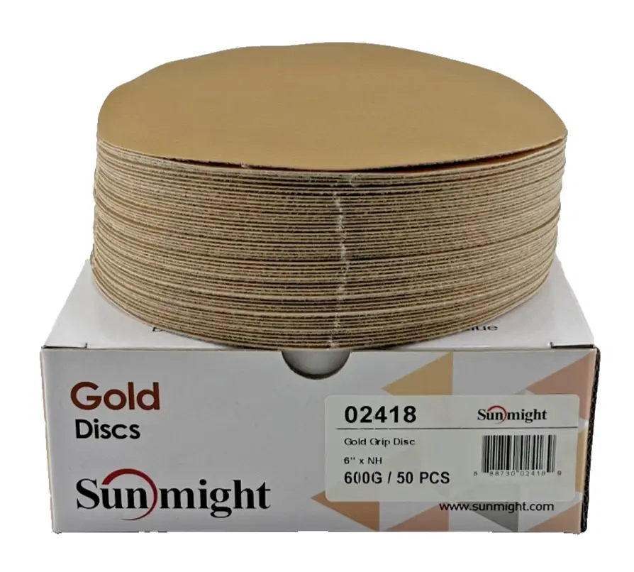 Sunmight Gold 02320 (sticky) 6" No Hole PSA Gold Disc 1000 Grit (100/Box)