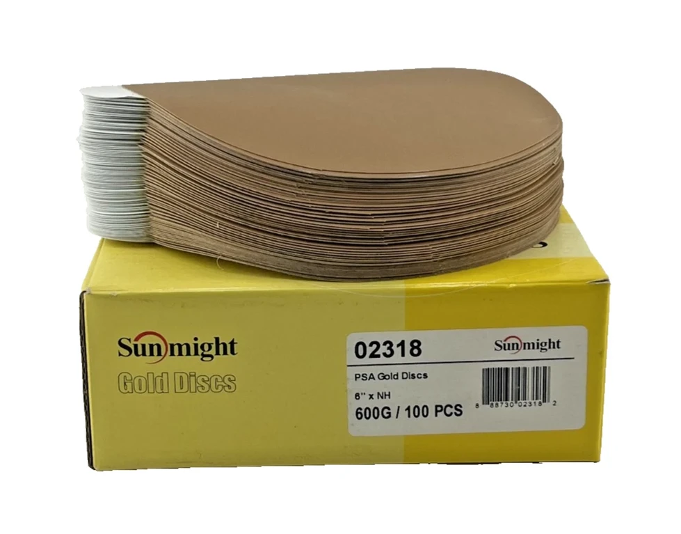 Sunmight 02318 Gold PSA No Hole 6" Discs Sticky 600 Grit (100pcs)