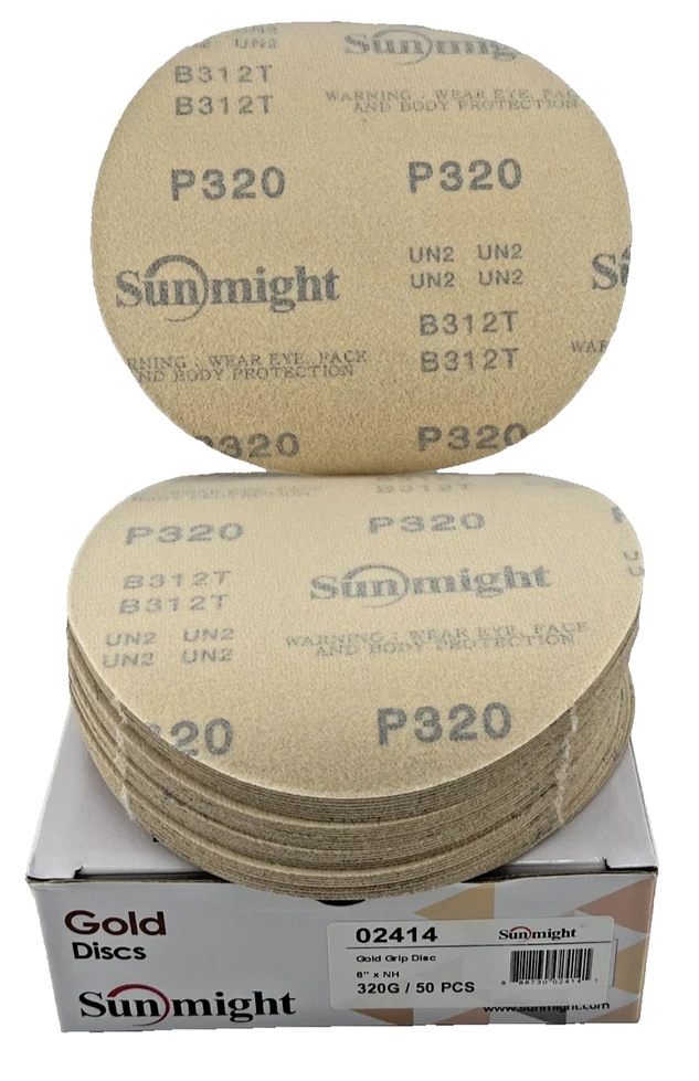 Sunmight 02414 Gold Hook & Loop 6 in. No Hole Sanding Discs 320 Grit (50pcs)